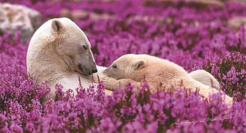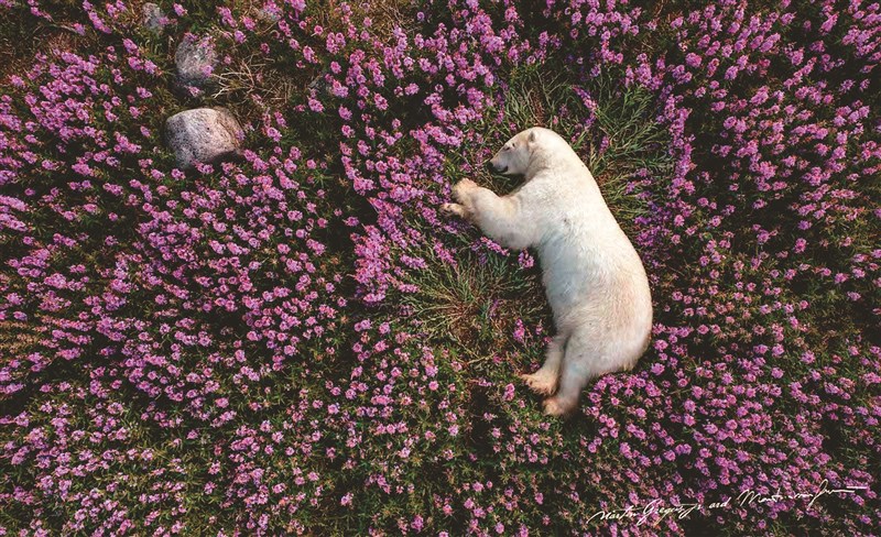 【本報綜合外電報導】雖然大多數北極熊照片都是在冰雪背景下拍攝,但生於斯洛伐克、現居加拿大的攝影師格雷格斯(Martin Gregus) 在北極露營探險多年後開始新的冒險,這次他想在夏天捕捉北極熊的畫面,看看這個季節會提供什麼新的創作可能性。結果是一系列精美的影像,特別引人注目的是,格雷格斯在紫色花海中拍攝的北極熊身影,可以看到牠們安靜地熟睡,簡單地融入環境。在一張照片中,北極熊甚至看起來正在呼吸新鮮空氣並享受這一刻。