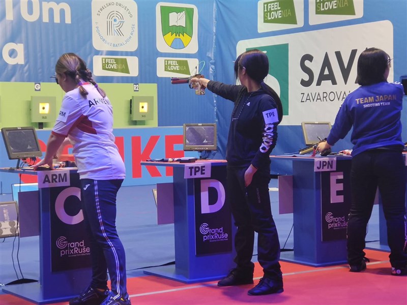 吳佳穎(中)在斯洛維尼亞大獎賽拿到銀牌。圖/射擊協會提供