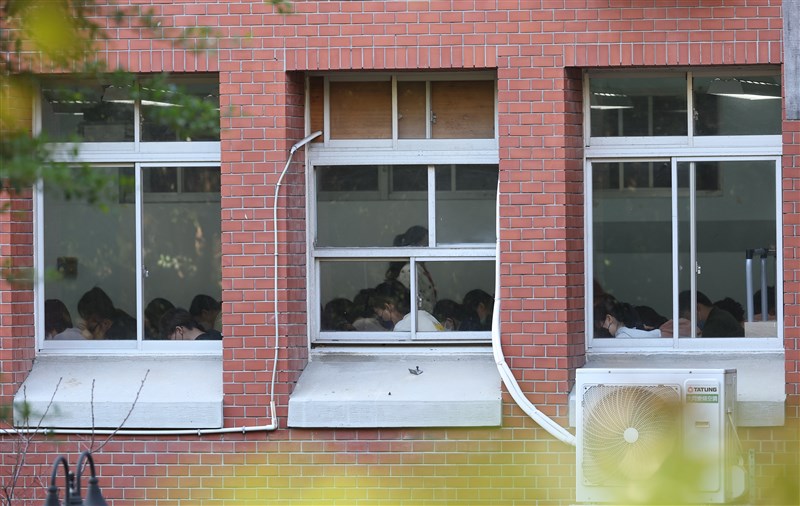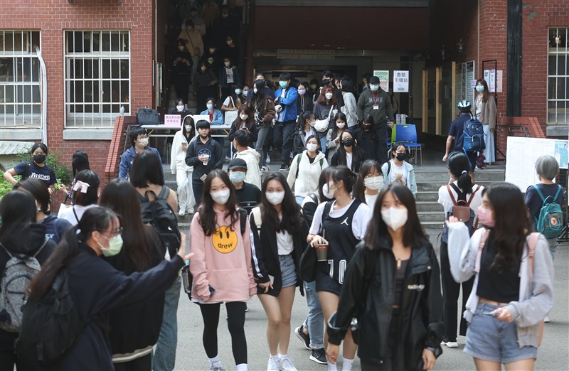 圖為考生14日上午戴口罩在台師大試場應試。圖/中央社