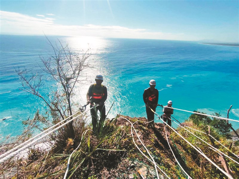 蘇花公路坍方搶修,出動「蜘蛛人」進行邊坡、高空作業,預計今天下午五時搶通。