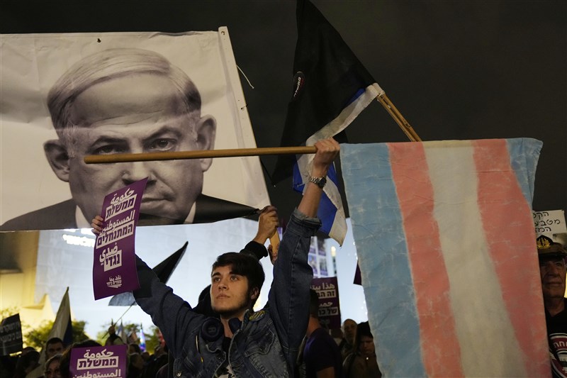 【本報綜合外電報導】至少2萬名民眾14日湧進特拉維夫(Tel Aviv)市中心,抗議總理納坦雅胡(Benjamin Netanyahu)新組成的右翼政府。有批評者認為,這個新政府威脅了以色列民主。
