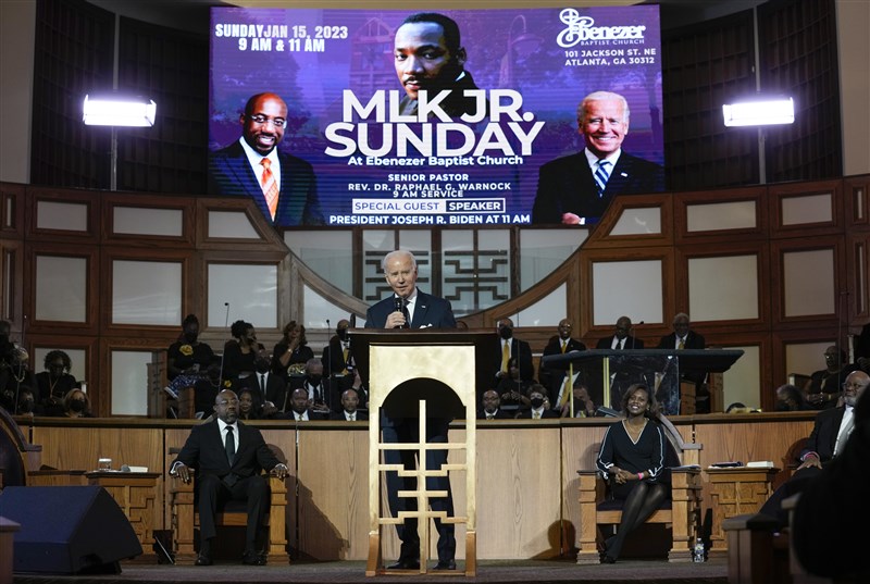 悼金恩博士94歲冥誕 拜登:種族平等尚未實現 |2023.01.16 語音朗讀 756觀看次 字級 大 中 小 美國總統拜登在美國民權領袖金恩博士的教堂演說時表示,金恩博士的種族平等、正義的夢想尚未實現。圖/美聯社 【本報綜合外電報導】美國總統拜登15日在美國民權領袖金恩博士(Martin Luther King Jr.)的教堂演說時表示,金恩博士的種族平等和正義的夢想尚未實現,並再次呼籲為美國靈魂而戰。喬治亞州亞特蘭大是金恩博士的故鄉,他曾在埃比尼澤浸信會教堂(Ebenezer Baptist Church)擔任牧師,今年1月15日是金恩博士94歲冥誕。法新社報導,拜登在亞特蘭大埃比尼澤浸信會教堂說:「我曾在國會、國王、女王和世界各國的領導人面前發表演說。我這種事做了很久,但在此令人生畏。」金恩博士1968年在田納西州曼菲斯(Memphis)遭刺殺身亡。美國自1986年起將每年1月第3個星期一定為馬丁.路德.金恩紀念日(Martin Luther King Jr. Day),屬於聯邦法定假日,今年落在1月16日。美國著名非裔民權領袖馬丁路德.金恩。圖/擷取自Youtube Screen Viewer拜登到亞特蘭大紀念這個節日,回憶起爭取民權和反對種族歧視的金恩博士最著名的演講,他在演講中一再重複「我有一個夢」這句話。拜登表示:「在這個夢想中,我們都應享有自由和正義,實現這個夢想仍然是我們時代的任務,因為它還沒有實現。」拜登告訴集會民眾,他在辦公室裡放了一尊金恩博士的半身像。他說:「要持續為這個國家的靈魂而戰,這是一場持續不斷的奮鬥。這是希望與恐懼、善良與殘忍、正義與不公正之間持續的纏鬥。」「美國的靈魂體現在神聖的命題中,即我們生而平等,並且是按照上帝的形象創造。這就是金恩博士為之獻出生命的神聖命題。」美國總統拜登15日出席悼念金恩博士活動。圖/美聯社 前一篇文章 珍奶風靡法國 台灣手搖飲店大舉插旗 下一篇文章 日本研議室內無需戴口罩 最快春季實施 熱門新聞 01佛光山大雄寶殿 逾千僧信迎萬佛2026.02.0102【紀實攝影】花蓮月光寺 台灣後山的人間淨土2026.02.0103土方之亂推高成本 房價漲壓浮現2026.02.0204淨心是最好的預防醫學 洛桑加參:找回不生病的力量2026.01.3105【書頁微光】《把牠找回來》 流浪少年變身寵物偵探2026.02.0106【人間行者心】一鏟一撬,心路通行2026.02.0107沙漠獅變海洋獅 為人類上了一課2026.02.0108針灸醫療 助癱瘓大象站起來2026.01.3109佛光山春節平安燈 點亮馬年新希望2026.01.3110AI不是機器人 而是一種學習方式2026.01.31 訂閱電子報 台北市 天氣預報 台灣一週天氣預報 相關報導 烏總統悼陣亡官兵美軍集結 川普:伊朗應非常擔心首爾女中畢業生 著韓服迎成年禮新加坡航展 秀「空中芭蕾」美擊落伊朗無人機 緊張局勢升高四川恐龍燈會 〈木蘭傳奇〉吸睛