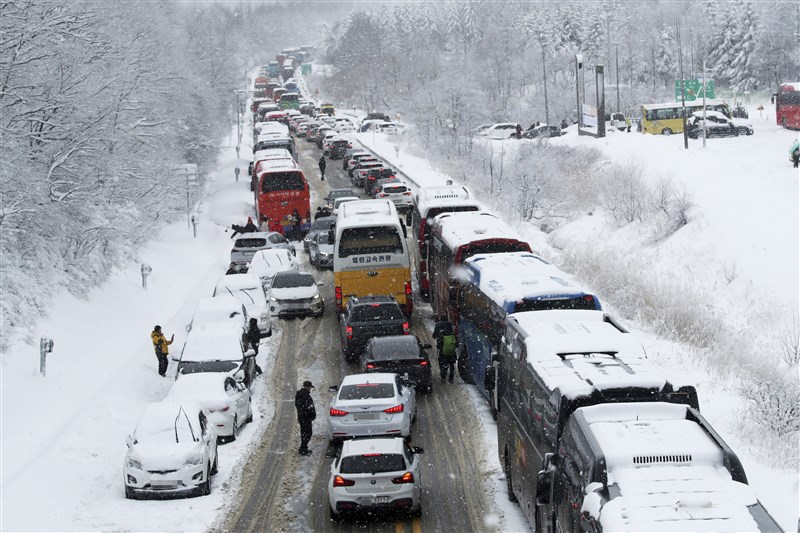 南韓15日晚間驚傳連環車禍,近50輛汽車在首爾附近一條結冰的高速公路上相撞,最終造成1人死亡、數十人受傷。圖/美聯社