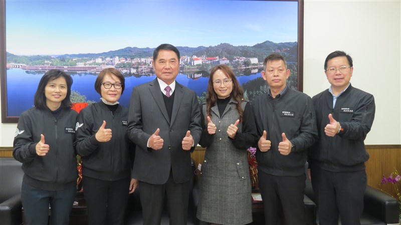 苗栗市文華國小老師謝素華(右三)通過客委會客語能力高級認證,全國僅6人,全縣第一人,縣長鍾東錦(左三)等人今天表揚。圖/范榮達