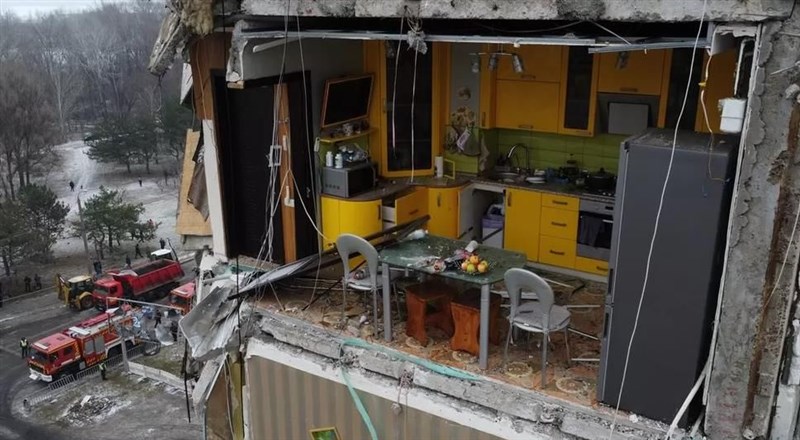 烏克蘭議員也對此照片回應稱,「人們在這裡做飯、在廚房交談、慶祝節日、歡笑、爭論」,並將建築物的毀壞比作國家的命運、強調「這些是烏克蘭的傷口、我們家園的傷口」。