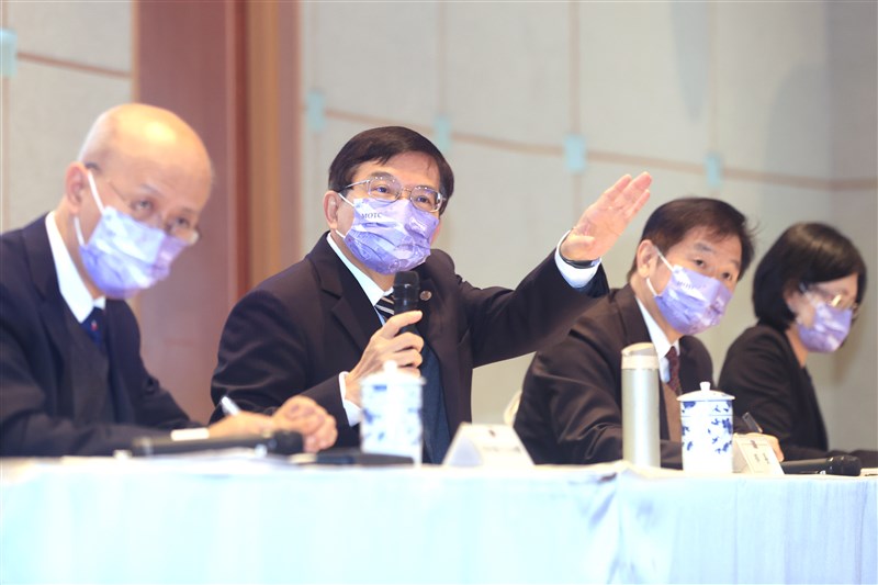 交通部長王國材(左二)今出席新春記者會表示,這幾年他最不滿意的就是道安,去年數字不是很好看,今年首要針對機車、高齡者、行人提出安全專案。圖/蘇健忠