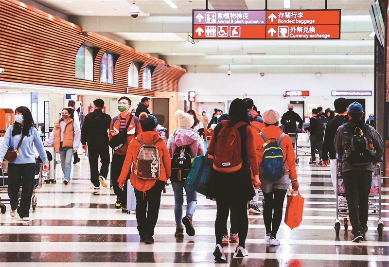 據預報系統顯示,桃機2023春節疏運期間,單日最高出入境人次為9萬4000人次,是自2020年2月以來首度突破9萬人。圖為桃園機場旅客入境情形。圖╱黃仲明
