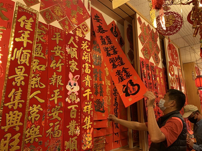 近日有不少宮廟舉辦春聯揮毫活動,而市集、文具行也展售各式的春聯、斗方,民眾左右翻找就希望挑出一幅合意的春聯,盼為新年招來好運、平安順利