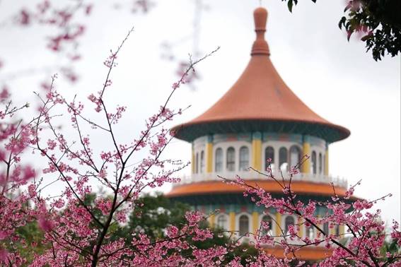 新北捷運公司表示,淡水天元宮一直以來為北海岸賞櫻勝地,今年的三色櫻花期已經開始,新北市景觀處與天元宮合作,將在1月18日至1月29日舉辦「新北蒔花好綻 浪漫櫻花季」活動,白天欣賞粉櫻,夜間也有光影夜櫻可以欣賞,搭乘淡海輕軌在V05淡金北新站下車,可轉乘866、875、875、876、877路線巴士,或騎乘Ubike只要25分鐘即可抵達,同時,沿線的公司田溪也有櫻花步道,非常適合全家人安排輕鬆的親子走春行。