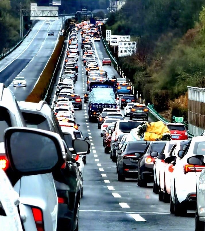 大陸2023年春運返程車潮,將在27日到來,官方估計高速公路將形成密集返程車流,達到流量最高峰。圖為大陸杭徽高速公路春運情況。圖/取自都市快報