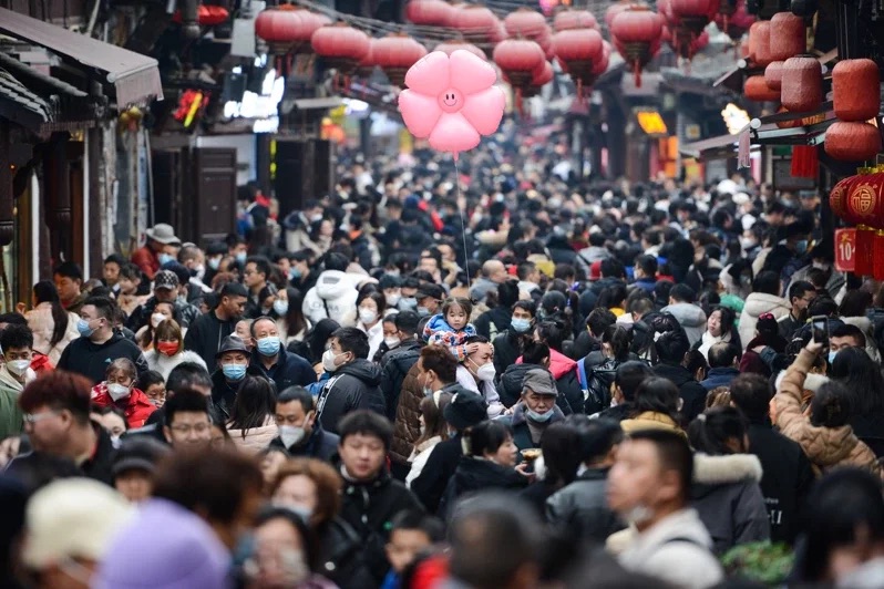 據中國文化和旅遊部消息,經文化和旅遊部數據中心測算,今年春節假期國內旅遊出遊3.08億人次,旅遊收入3758.43億元人民幣,圖為遊客在重慶磁器口古鎮遊覽。圖/中新社