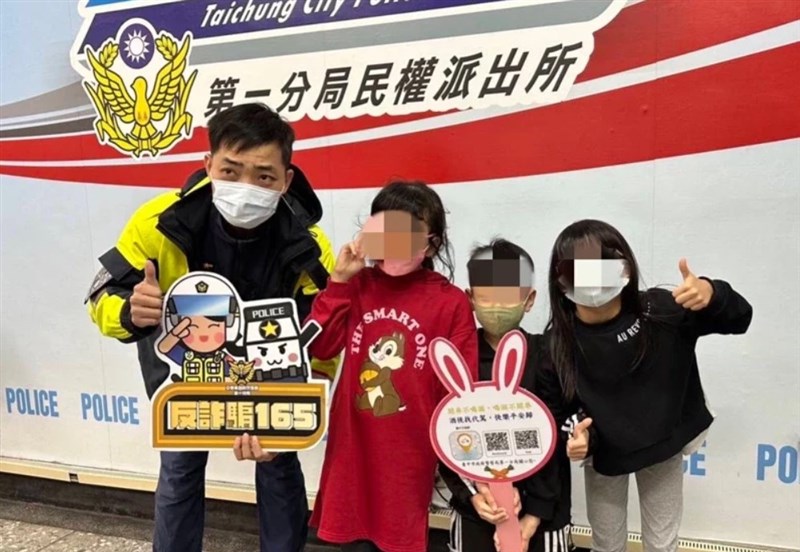 台中市7歲王姓男童(右二)在24日時拾獲4200元,當天即送到派出所失物招領。圖/第一警分局提供
