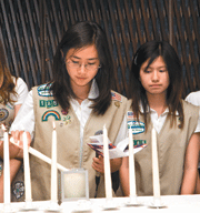 【人間社記者覺皇、心聚綜合報導】美國西來寺一日第三度受邀至亞市Arcadia Congregational教堂,參加亞市宗教交流行動團體響應美國「全國祈禱日」所舉辦的祈禱會,佛光西來女童軍也受邀擔任燃燈點燭儀式中掌燭者。