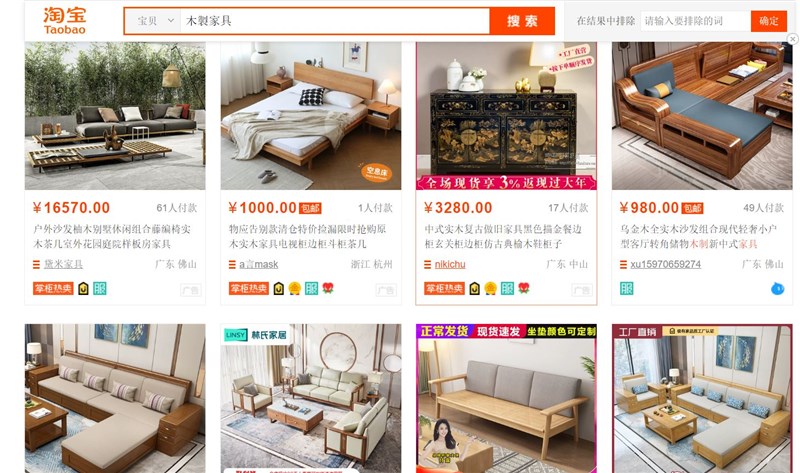 財政部關務署基隆關公告,跨境網路購物風行,民眾透過電子商務平台訂購家居擺設、種子植栽等植物類商品,並以海運快遞方式進口情形愈見頻繁,但此類貨物涉及檢疫等輸入規定,違反者將受高額行政裁罰新台幣15萬元。圖為淘寶網上搜索的木製家具。圖/取自淘寶網