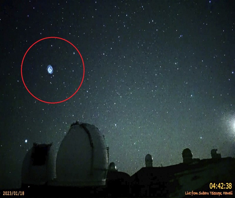 根據報導,位在夏威夷茂納凱亞火山(Mauna Kea)山頂的日本國立天文台昴星團望遠鏡(Subaru telescope)外一具攝影機於1月18日拍到了這個現象,從縮時影片可見,一個白色球體穿越天際時旋轉開來,接著形成了一個漩渦,然後逐漸變淡與消失。