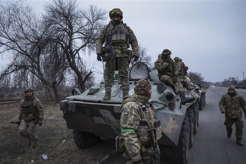 圖為烏克蘭軍人前往頓內茨克州(Donetsk)。圖/美聯社