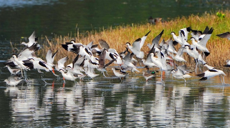 反嘴鴴外型有著獨特的上翹彎嘴、黑白羽色及藍灰色長腳,不只會群聚活動,飛行時還會發出輕柔如笛音的聲音、相當可愛。產發處指出,現在正是欣賞水鳥最佳時機,民眾可就近前往濕地欣賞反嘴鴴、高蹺鴴、黑面琵鷺等眾多水鳥的身影。