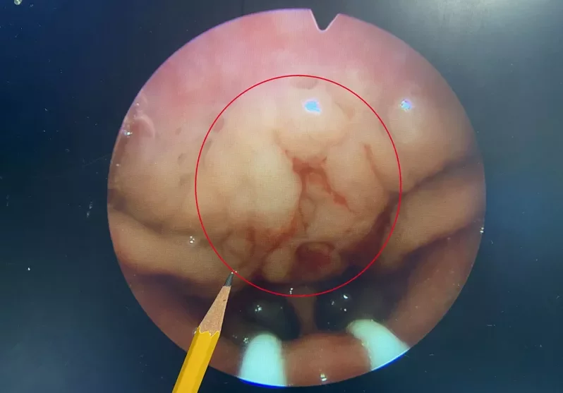長安醫院耳鼻喉科林恆甫醫師表示,內視鏡檢查發現,男童有腺樣體肥大以及扁桃腺肥大的問題,這也是大部份患有睡眠呼吸中止症的主要原因。