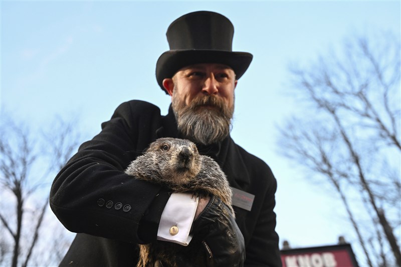 超過百年傳統的「土撥鼠日」2日在美國賓州登場,超人氣土撥鼠菲爾走出洞穴後看見自己的影子,預言北美冬天可能再持續6周。圖/美聯社