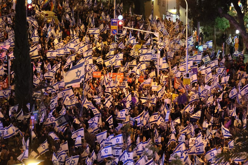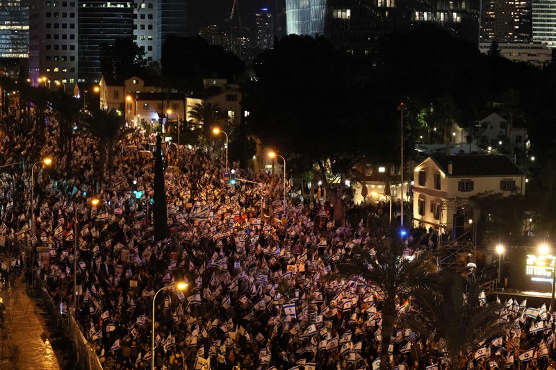 以色列抗議延燒5周 萬人上街反司法改革計畫 |2023.02.05 語音朗讀 1242觀看次 字級 大 中 小 以色列數以萬計民眾連續第5周上街抗議,反對總理納坦雅胡(Benjamin Netanyahu)新政府司法改革計畫。圖/法新社 【本報綜合外電報導】以色列數以萬計民眾當地時間4日冒著大雨集會,連續第5周抗議總理納坦雅胡(Benjamin Netanyahu)新政府司法改革計畫,批評人士認為這個計畫恐危及法院對政府閣員的民主制衡力。路透報導,以色列政府稱有必要改革來遏阻法官越權,但相關計畫招致律師等群體強烈反對,並引發企業領袖疑慮,使得以色列社會早已存在的政治分歧情況進一步惡化。特拉維夫(Tel Aviv)一名48歲軟體工程師告訴路透:「我今晚來這裡抗議以色列從民主變成獨裁,這是恥辱,必站不住腳。」納坦雅胡駁斥這波抗議潮,稱左翼反對派藉此來拒絕接受去年11月大選結果,納坦雅胡去年率領聯合黨(Likud)和極右派與極端正統派(Ultra-Orthodox)政黨結盟,在大選後回鍋掌權,成為以色列史上最右翼政府領導人。納坦雅胡政府的計畫將加強司法人員任命的政治控制權,並限制最高法院在推翻政府決定或國會立法的權力,抗議群眾認為,如果政府的計畫成功,將會傷害以色列民主。圖/法新社曾任以色列總理的反對派領袖拉皮德(Yair Lapid)在港市海法(Haifa)加入示威活動,他說:「抗議群眾「出面拯救國家,我們來和他們一起抗議」。法新社報導,自納坦雅胡新政府去年12月底上任以來,抗議活動已成為每周六晚間的固定活動。以色列媒體報導,全國有20個城市舉行抗議活動,光在特拉維夫就聚集了數以萬計群眾。法新社聯繫以色列警方時,對方並未提供官方統計的抗議人數。法新社報導提到,納坦雅胡新政府的司法改革計畫,將允許120席國會僅需在表決中取得61名國會議員的同意(簡單多數決),就能推翻最高法院任何裁定的結果。圖/法新社 前一篇文章 智利熱浪野火燒不盡 傷亡人數持續增加 下一篇文章 美國極地寒流來襲 華盛頓山寒風指數零下79度創紀錄 熱門新聞 01【遨遊藝事】 威尼斯沉船書店2025.12.2902【中醫專欄】 中醫防失智之道2025.12.2703【寰宇采風】京都最溫柔的秋色:紅葉永觀堂2025.12.2604台北道場歲末聯誼 感謝義工同行菩薩道2025.12.2705南瓜籽紅豆黑芝麻 含天然助眠營養素2025.12.2606新馬寺率大馬校長團 訪佛光大學2025.12.2707世界神明聯誼會 佛神共祈和平2025.12.2608看人間 厭童、厭老,然後呢?2025.12.3009橫山書藝雙年展 書法從案頭到街頭2025.12.2610宜蘭7.0地震 921後第3強震2025.12.29 訂閱電子報 台北市 天氣預報 台灣一週天氣預報 相關報導 泰釋善意 遣返18名遭俘柬士兵賊鑿穿德銀行金庫 盜走11億財物習新年談話:兩岸同胞一家親擴大投資 陸砸1.3兆投入「兩重」建設璀璨燈飾迎新年控烏無人機襲官邸 普亭告狀川普