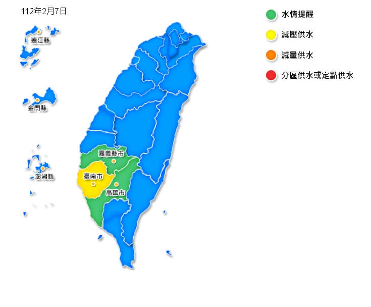 水利署透過新聞稿表示,面對全球氣候變遷帶來枯旱風險及威脅,自去年6月起已提前部署,採取節水調度及啟動相關防旱工作因應,並於11月24日成立旱災經濟部災害緊急應變小組,且已召開42次防旱工作小組、節約用水6.1億噸,超過1座曾文水庫,目前全台各地水庫蓄水率3成至9成以上。