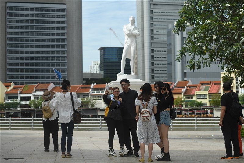 2月7日,中國遊客在新加坡河畔觀光。圖/新華社