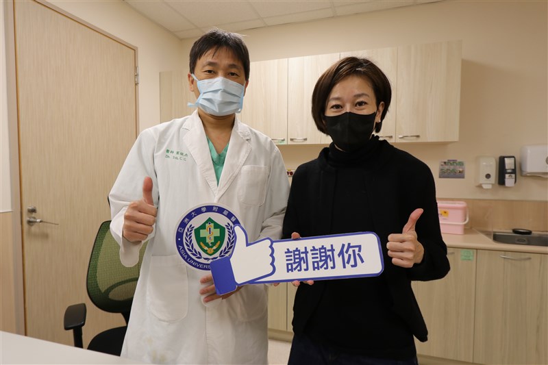 患者李小姐回診時感謝醫師悉心治療,讓她可以延續運動人生。圖/亞大醫院提供