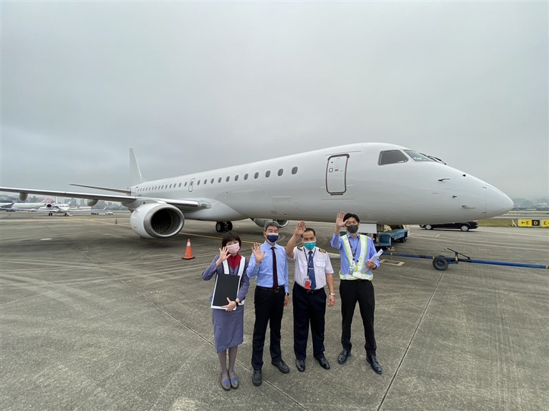 華信航空從2007年引進8架ERJ-190噴射客機,在完成14年的空中服務後,最後一架 E190今上午從松山機場飛離台灣,正式走入歷史。圖/華信航空提供