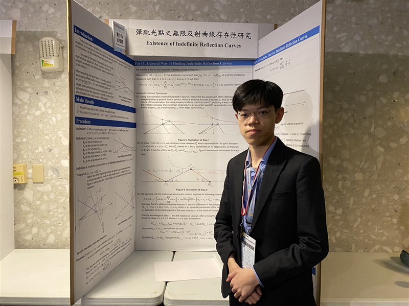 【本報台北訊】台北市自學生邱達夫從小五開始對數學感興趣,他的研究《彈跳光點之無限反射曲線存在性研究》模擬撞球的動態系統,想要讓撞球進洞,只要靠計算就行。研究成果獲得「2023年台灣國際科學展覽會」最高榮譽「青少年科學獎」,且評審認為後續還有發展空間,可延伸到軍事研究。