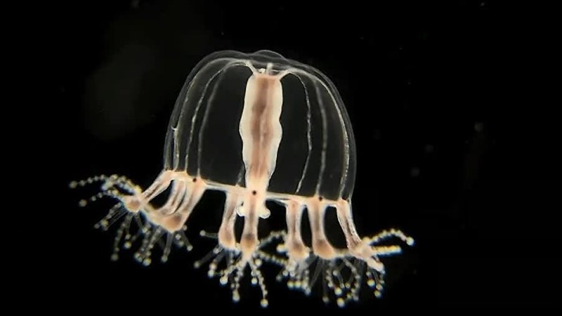 海生館經營團隊海景公司企業部經理毛智瑋說,主要分布在北大西洋、北海、地中海一帶的枝足水母,最大直徑可達7毫米左右,如吊鐘般優雅的美麗外型, 擁有超高人氣,一般會有8至10條觸手,每條觸手的基部都有一個眼點,這些眼點可以探測水中的光源和化學痕跡,同時幫助在空間上定位。