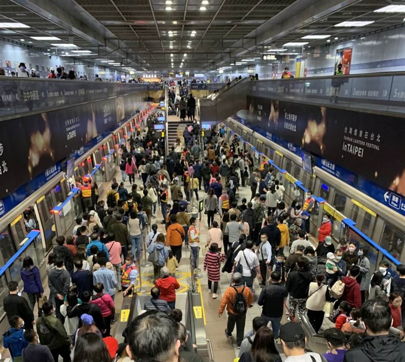 台灣燈會吸引眾多民眾前往賞燈,圖為國父紀念館站乘車人潮。圖/中央社