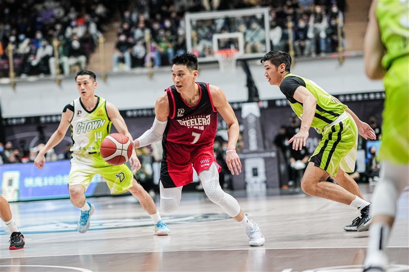 林書豪(中)受到夢想家嚴防,手感不佳。圖/高雄17直播鋼鐵人提供