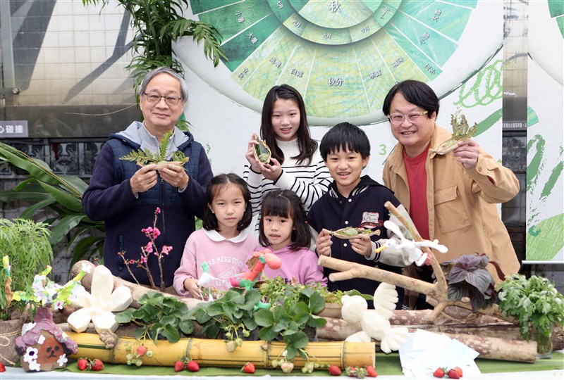 節目顧問紙風車文教基金會董事長小野、如果兒童劇團團長趙自強也出席記者會,今天也適巧是節氣「雨水」,兩人也和小朋友們一起用新鮮艾草,製作「艾草春茶糰子」。