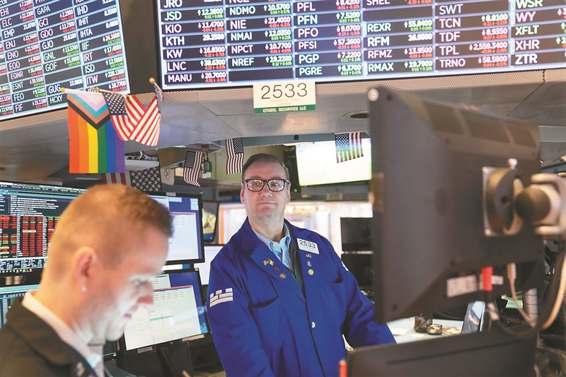 國際金融市場行情回升,勞動基金初估1月獲利可望逾1500多億元。圖為美股勁揚情況。圖/美聯社
