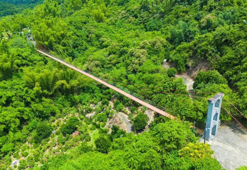 「木柵教會」旁的木柵吊橋讓可領略山林的靜美。圖/高雄市觀光局提供