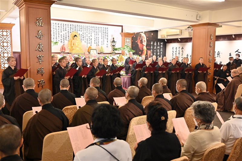 「佛光山開山祖師星雲大師讚頌會」今天(20日)在萬壽園舍利堂舉行,僧眾以吟唱詩、歌懷念圓寂的大師,並盼再續佛緣。