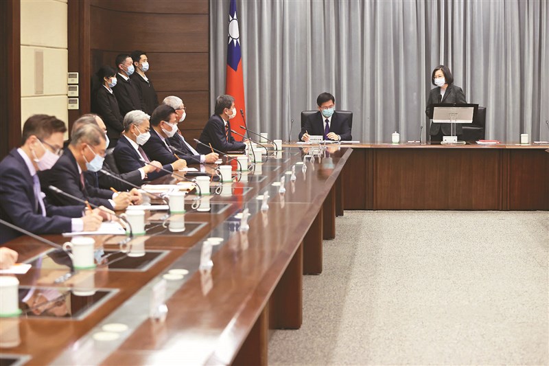 總統蔡英文(右)昨接見八大工商團體理事長,感謝業界領袖在疫情期間協助台灣經濟,在全球逆勢中持續成長。圖/中央社