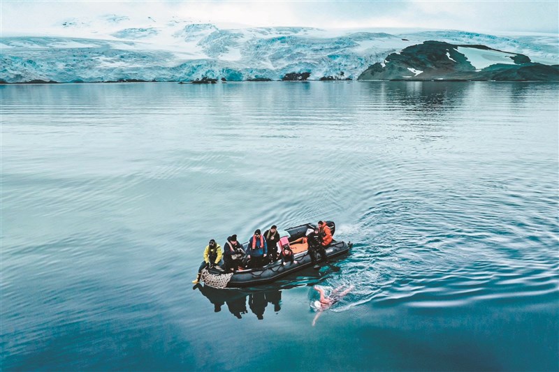 智利女泳將耶南德茲,以45分鐘又30秒泳渡水溫不到2℃的南冰洋。圖/法新社
