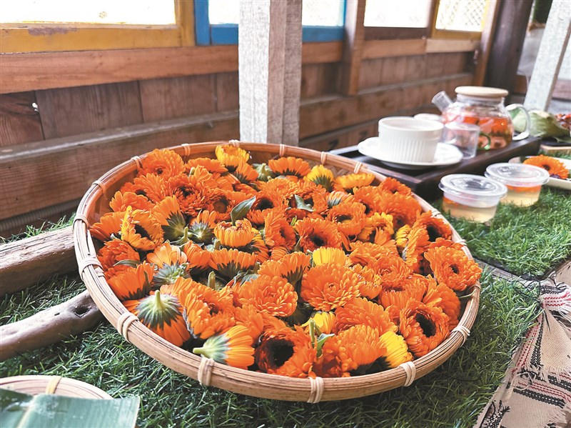 【本報新竹訊】新竹尖石的金盞花海近來逐漸成為當地知名季節景點,今年花季再度迎來盛產,有「黃金香草部落」之稱的那羅部落,今年除了三公頃的金盞花海,還搭配地景設計來吸引遊客目光,更推出金盞花料理及保養品,希望讓遊客不僅眼看也能嘴嘗。