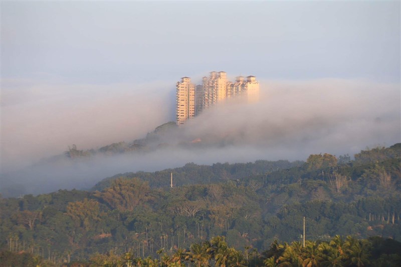 他表示,雲霧要剛好在大樓下方,又能剛好讓大樓頂端探出頭,並不容易,能等待拍到美景很難得,早春清晨遇氣候突變時偶有低層雲出現,氣象局發布清晨濃霧特報,有機會出現雲海。