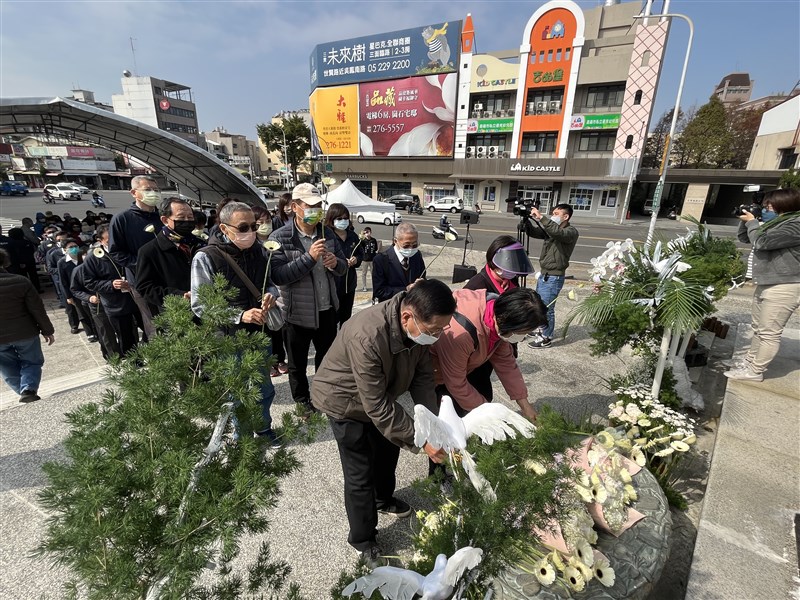 在228事件76周年紀念前夕,舉辦追思紀念會,以獻上鮮花方式表達追思。圖/李宗祐