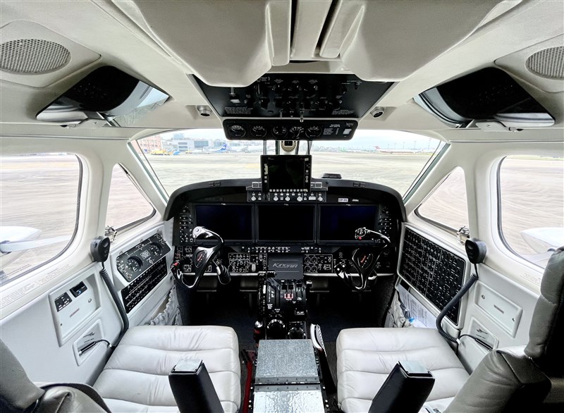 新機搭配最新型全數位航電系統、自動壓艙系統,飛航高度可達3萬5千英尺,可輕易拍攝玉山空景,滿油狀態可航行2600海浬,涵蓋至東沙群島等地,機腹則是開設雙照相艙,搭配高解析航攝數位相機、高光譜掃描儀、光達掃瞄儀等。