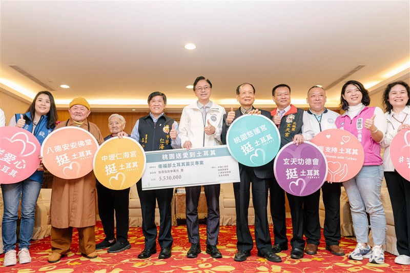【記者羅智華桃園報導】土耳其六日遭強震重創迄今,不僅後續發生多起強烈餘震,土耳其與敘利亞罹難人數,更超過四萬五千人。震撼人心災情讓各國紛紛伸出援手,為發揚宗教慈善精神,中壢仁海宮、桃園慈護宮、玄天功德會等宗教團體,日前亦攜手捐出五百多萬元善款,希望拋磚引玉,號召更多團體幫助當地災民度過難關、邁向重建之路。