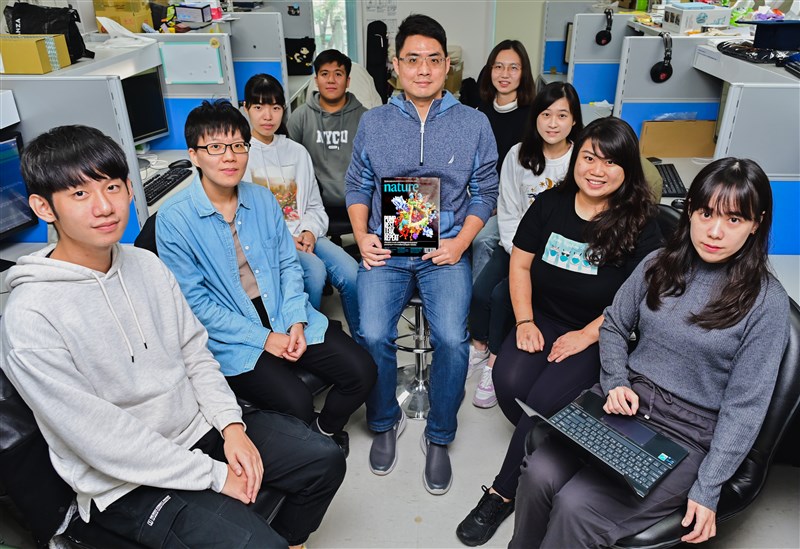陽明交大生物醫學資訊研究所副教授王禹超(中間持期刊者),與美國哈佛大學醫學院合作,發現除草劑會導致腸道發炎。圖/陽明交大提供