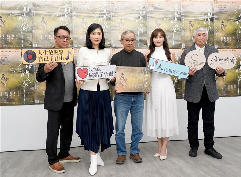 導演吳念真與游安順、張玉嬿、張靜之、柯一正出席《清明時節》2023昇華版全新卡司讀劇記者會。圖/綠光劇團提供