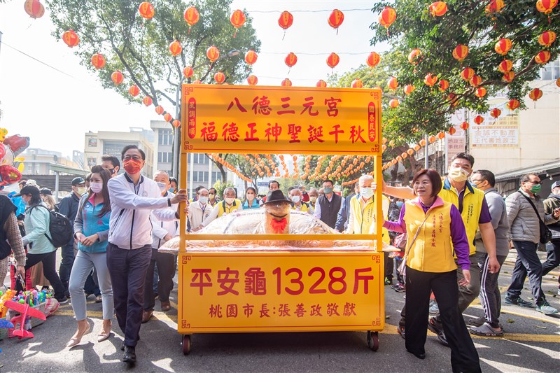 日前出席「八德祈龜文化薪傳活動」的桃園市長張善政表示,祈龜文化活動不僅具有傳承美好傳統文化的意涵,也透過DIY米糕龜等活動,讓民眾共襄盛舉、發揮創意,今年市府也敬獻重達一千三百二十八台斤的平安米糕龜,為大眾祈福。