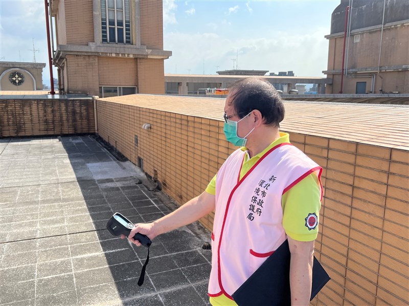 節電專家到屋頂使用熱顯像儀檢測溫度。圖/新北環保局提供