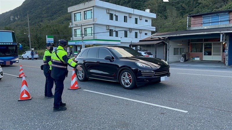 警方表示,今天中午過後,蘇花路廊北上車流逐漸變多,員警在四線道轉二線道的崇德管制站疏導,並放置三角錐,引導車輛單線依序前進,避免全塞在路口。