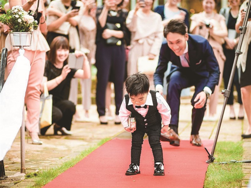 日本攝影師增田宏志日前於推特張貼一張可愛逗趣的照片,從照片可看到,有名穿著一身正裝、右手握著一個精緻小盒子的小花童,正彎下腰並盯著婚禮紅毯上的某個地方,而身後的大人則是對此面露笑容,並紛紛拿起手機進行攝影,還有一名身穿深藍色西裝的男子,帶著笑容朝小花童走去。