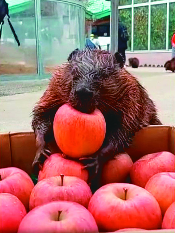 【本報綜合外電報導】河狸圓滾滾的模樣非常討喜,一隻河狸看到整箱蘋果見獵欣喜,除了嘴巴上咬一顆,還想再帶一顆走,但小短手卻怎樣都拿不起來,讓旁觀者看了哈哈大笑。